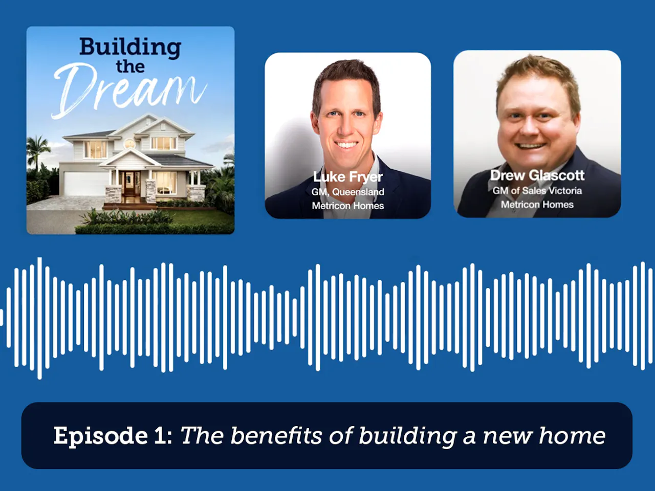 To talk us through all things building new, we're joined by Luke Fryer and Drew Glascott. Luke Fryer is the Queensland General Manager at Metricon and has a real passion for helping people bring their dream homes to life. Drew Glascott is Metricon’s General Manager of Sales in Victoria, and with more than 15 years of experience in the industry, he’s here to get you started on your home-building journey.