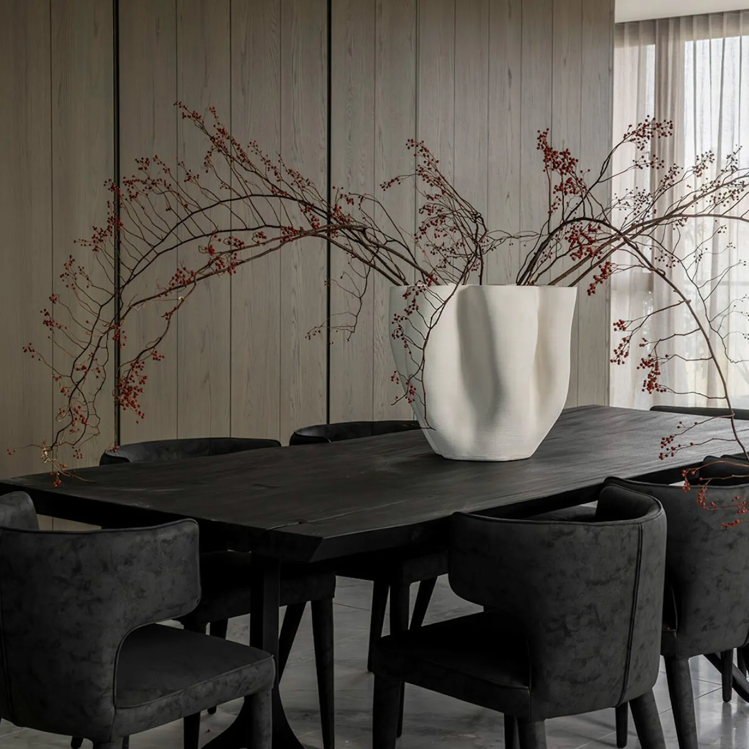 Elevate any tabletop with a pair of undulating salt and pepper shakers, meticulously carved from solid ash and finished with a carbonised touch. Available at Luc Design for $150 each, they're a luxe choice for those looking to make a statement.