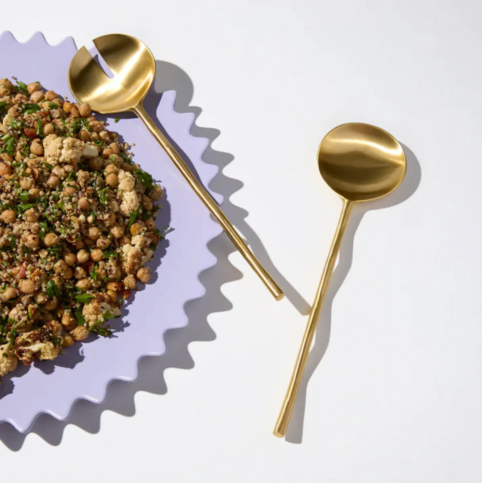 The very best design is both utilitarian in its approach, plus aesthetically pleasing. Which is why we love the idea of these wondrously wavy brass salad servers, $109.00 from Fazeek, as a fabulous housewarming gift.