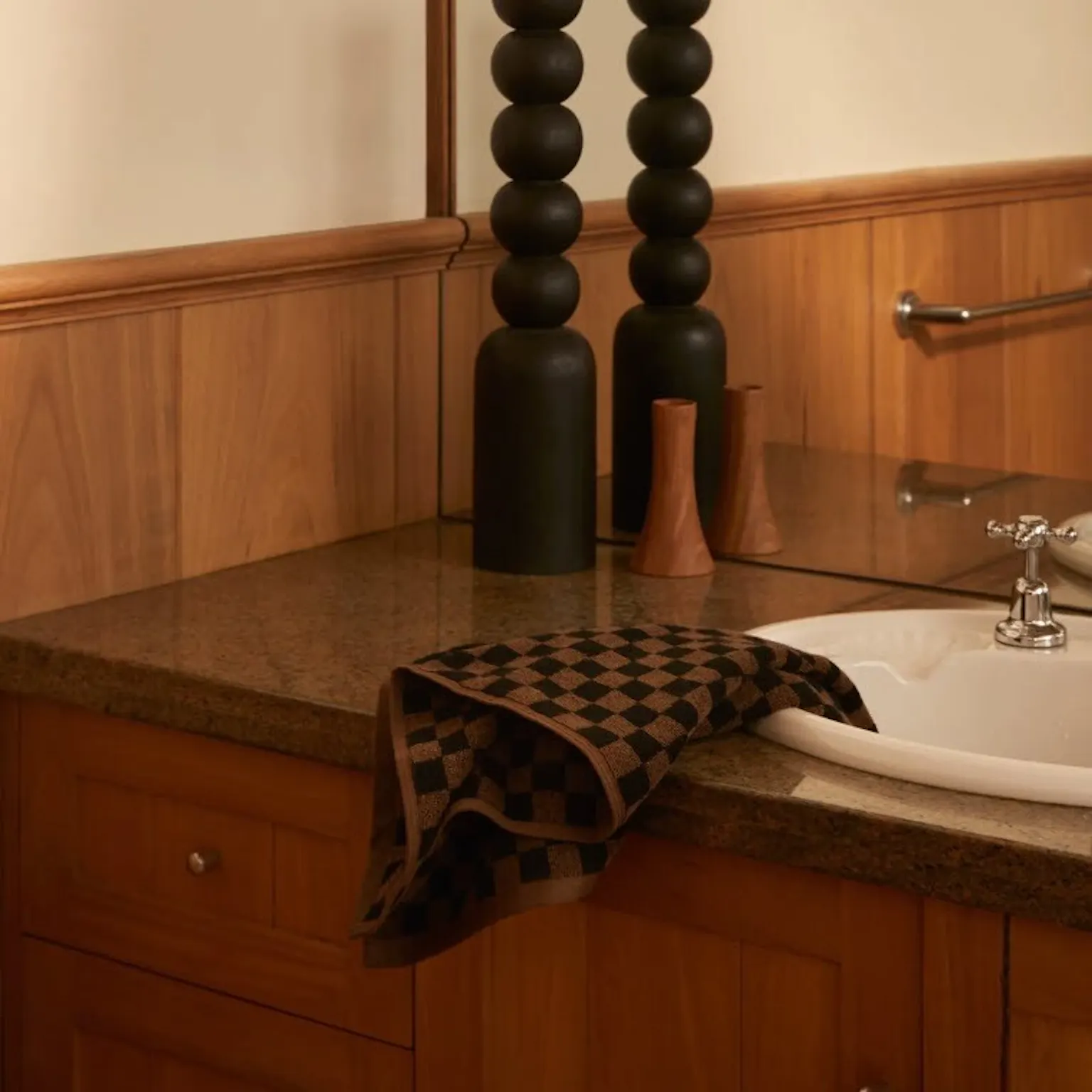 A bathroom can be truly transformed by selecting the swishest accompaniments to dab your silky skin dry in your bubble-filled sanctuary. Consider gifting this twin set of organic cotton hand towels in cement and rhus, plus tabac and noir for $98.00 from Baina.