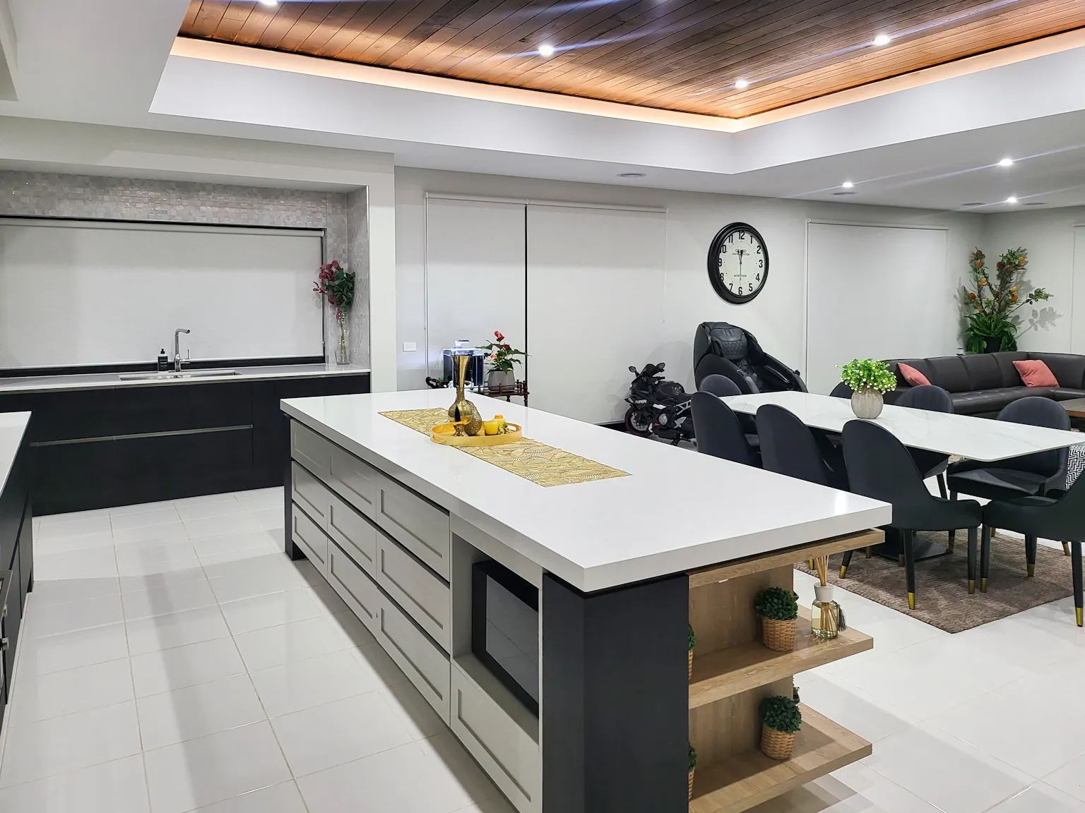 The Botanica 36 offers three bedrooms for the kids, sharing a dedicated rumpus area. The spacious family room and separate dining zone seamlessly extend to an L-shaped outdoor area. The designer kitchen, perfect for whipping up gourmet meals, includes a generously-sized butler’s pantry. Completing the package is a double garage for Kamran and Aneela.