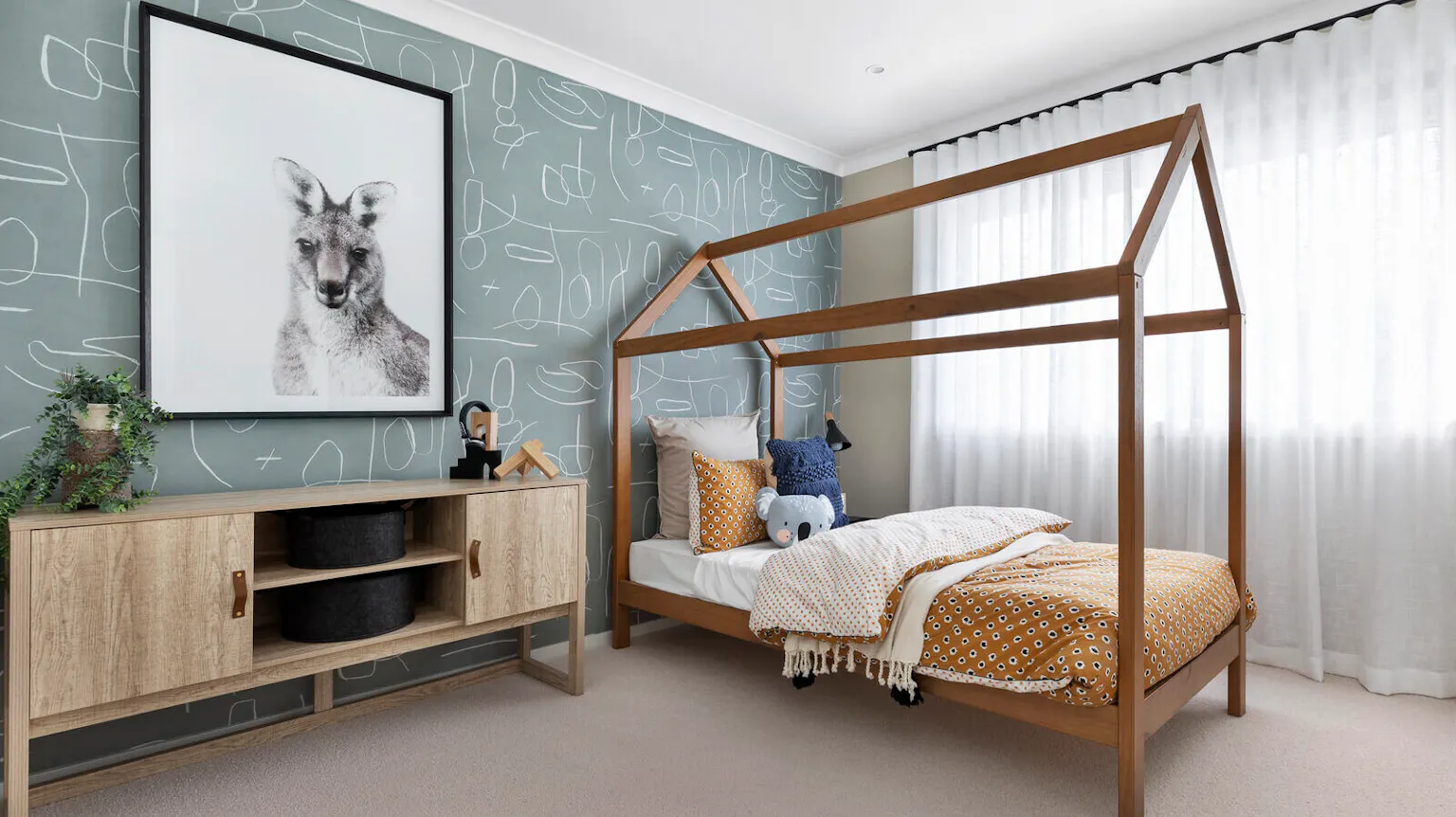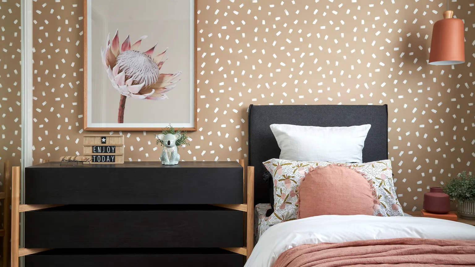 You can accompany a feature wall like this with a mirror or a striking bedhead if it’s in your bedroom. And wallpaper isn’t just for grown-ups. “I love using wallpaper in nurseries in particular,” Felicity adds. “It’s an effortless way to add a bit of fun to a room, and kids of all ages will really engage with that.”