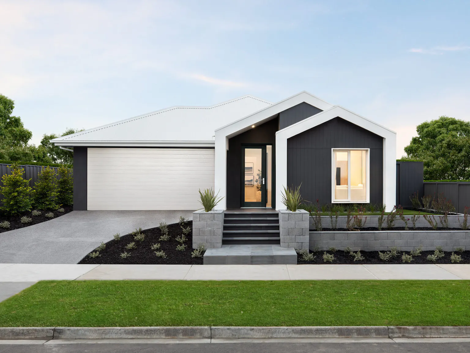Clean, modern, and quietly confident, the Summit façade brings a bold edge to single-storey living. Its striking feature gables rise above the master bedroom and front portico, complemented by lightweight vertical cladding and a sharp aluminium Heka Hood window surround. A 26-degree roof pitch, raked ceiling, and flush eaves maintain a sleek, cohesive look. The result? A contemporary design that feels both polished and inviting - proof that simplicity can still make a statement.