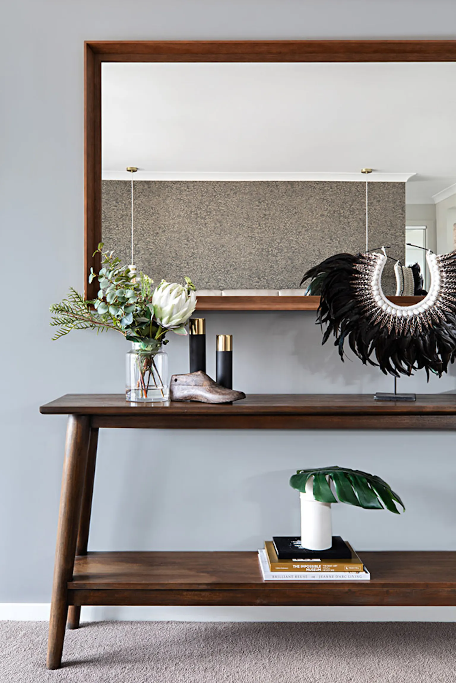 "A long-term favourite of interior designers is Dulux Natural White. For a neutral white that doesn't appear to show undertones, Dulux Vivid White is a great option; it's a bright, clean white, however with softness and subtle warmth. For those headed to the dark side, Dulux Domino is a great charcoal. It is almost black, but not quite, so it is a tad softer and works both inside and out. And for those who love the grey trend, a wonderful warm grey in light to mid-tone is Dulux Flooded Gum."