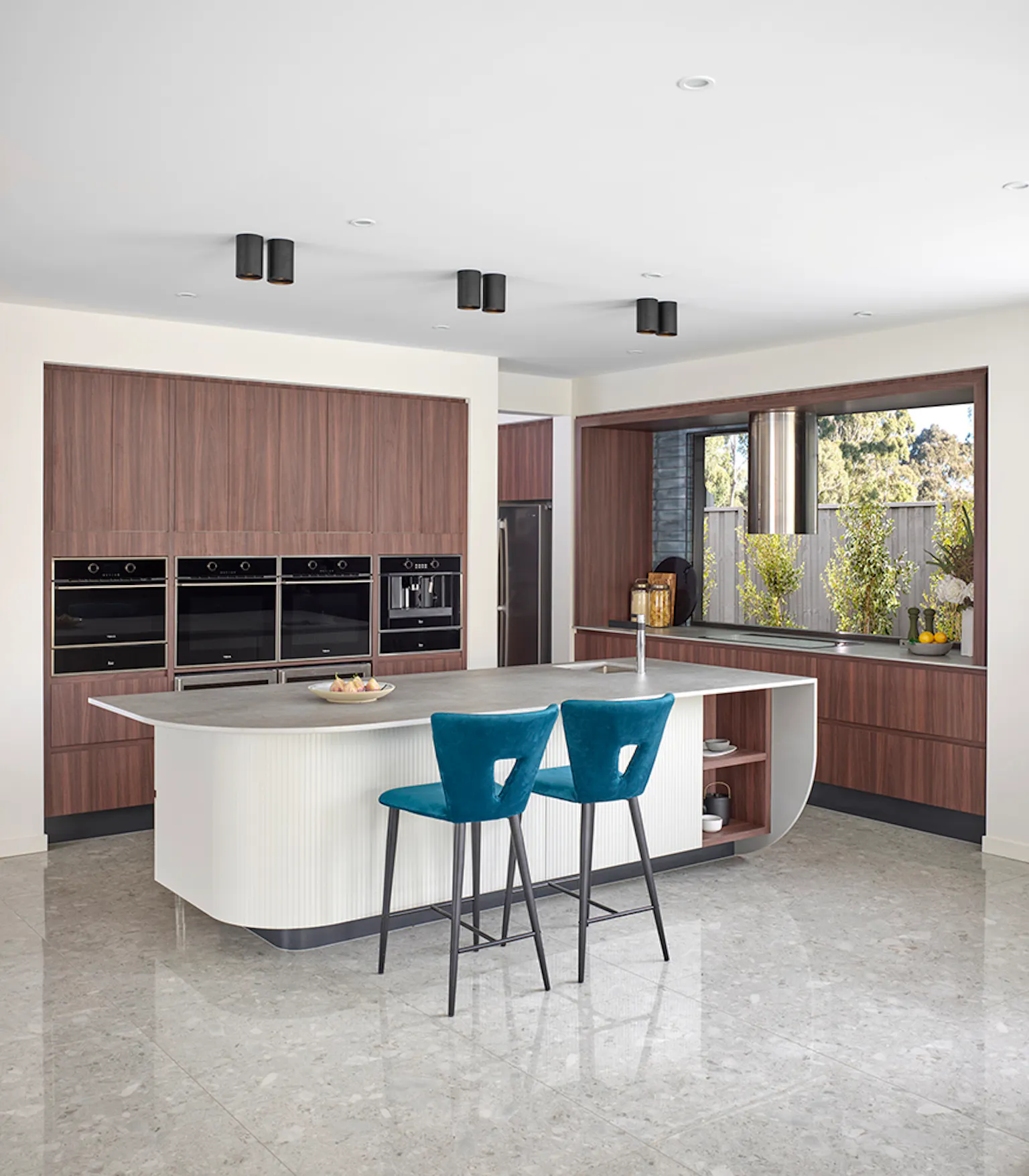 Island benches are changing shape. You're probably used to the classic rectangle shape – after all, what other form could a bench take? Well, we're here to tell you that curves are coming back in a big way in the kitchen. Whether it's a simple curved corner or something more dramatic, kitchens are getting a little more relaxed by playing with lines.