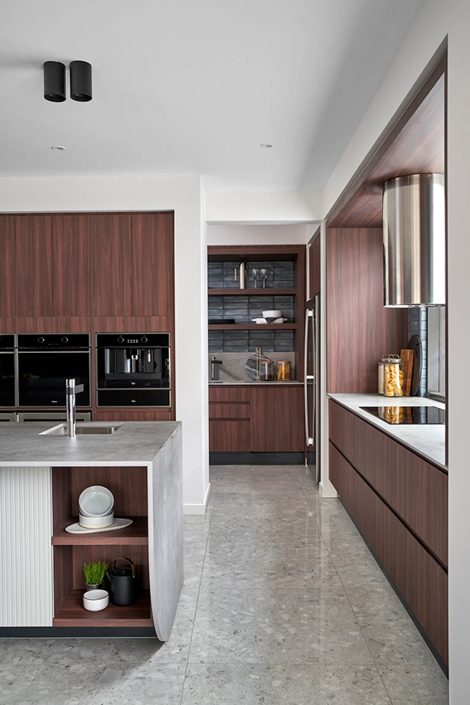 Kitchens without adequate storage are prone to becoming messy. If there's not enough cabinetry or pantry space, food, kitchenware, and more begin to pile out. Now that the kitchen is in such a central zone, you can get caught out with a messy home whenever someone drops in. The solution? A modern butlers' pantry.