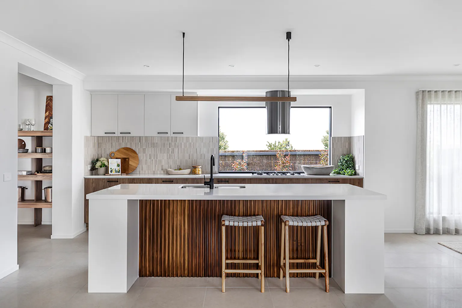 Window splashbacks are the other option. They allow plenty of natural light to flood into the kitchen, a space which, in the past, relied on task lighting and pendant lights to feel bright. Windows make rooms look bigger than they appear, too, so adding a window in the kitchen is an excellent option for anyone with a smaller block.
