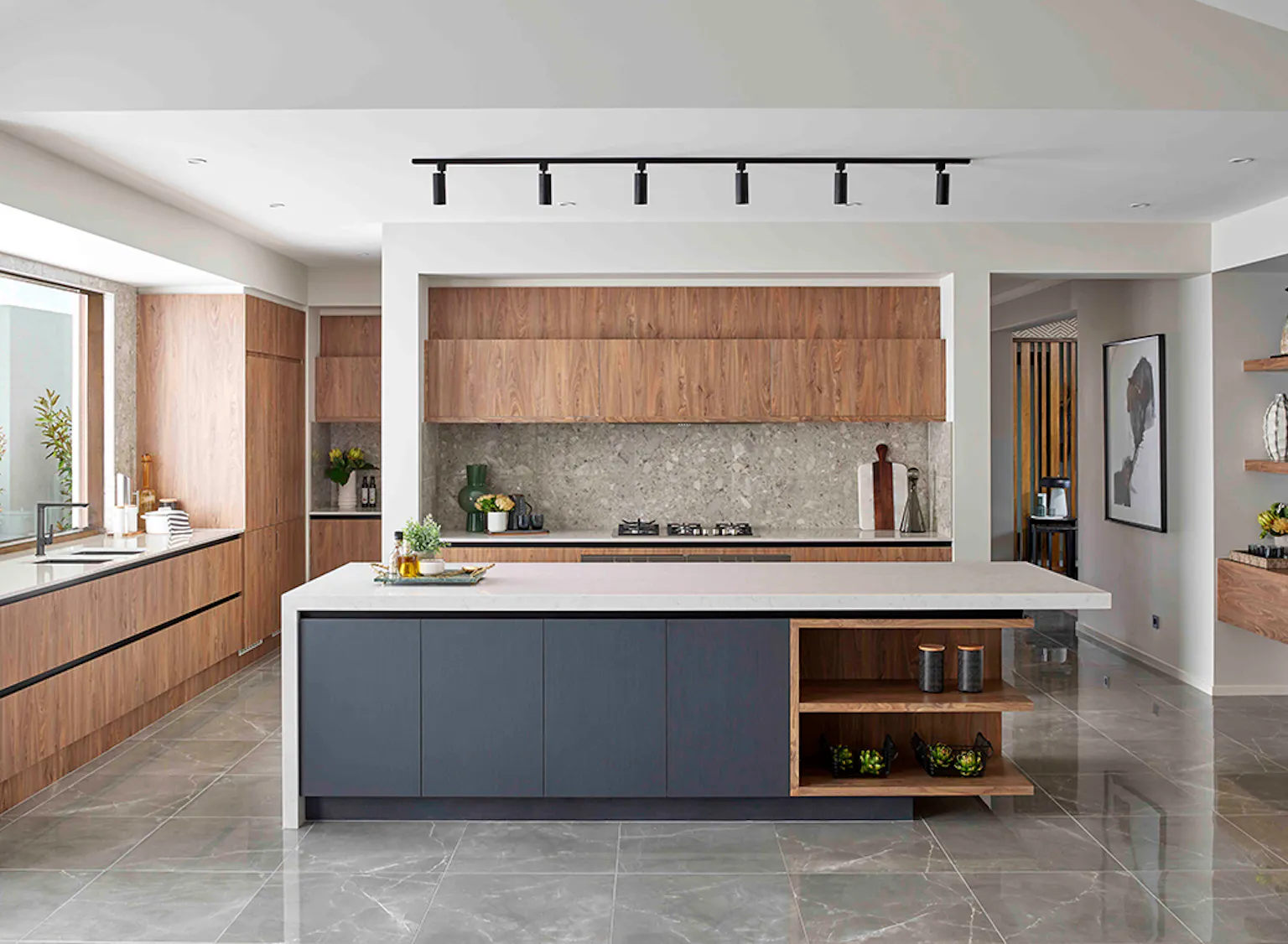 Mirror and glass splashbacks are a thing of the past – the current trend is stone and window, and for a good reason. Stone is perfect for anyone wanting to create a more seamless look in their new kitchen— and you can explore more splashback ideas and trends for a modern kitchen in our detailed guide. You can carry the stone from your benchtop into the splashback for a sophisticated feel and easy focal point.