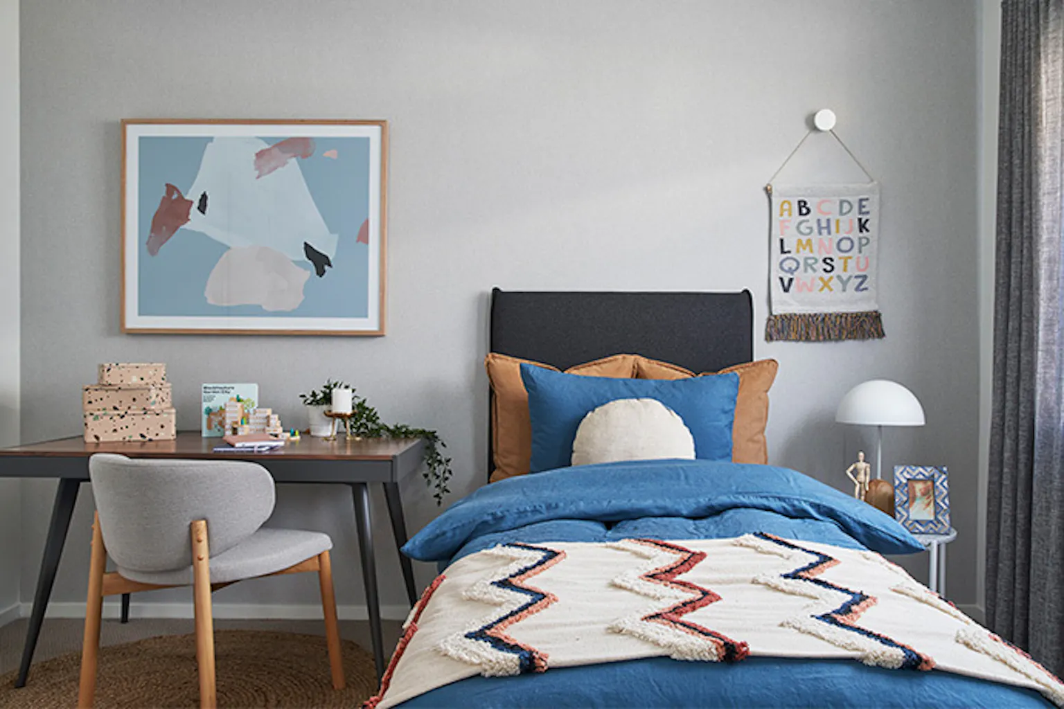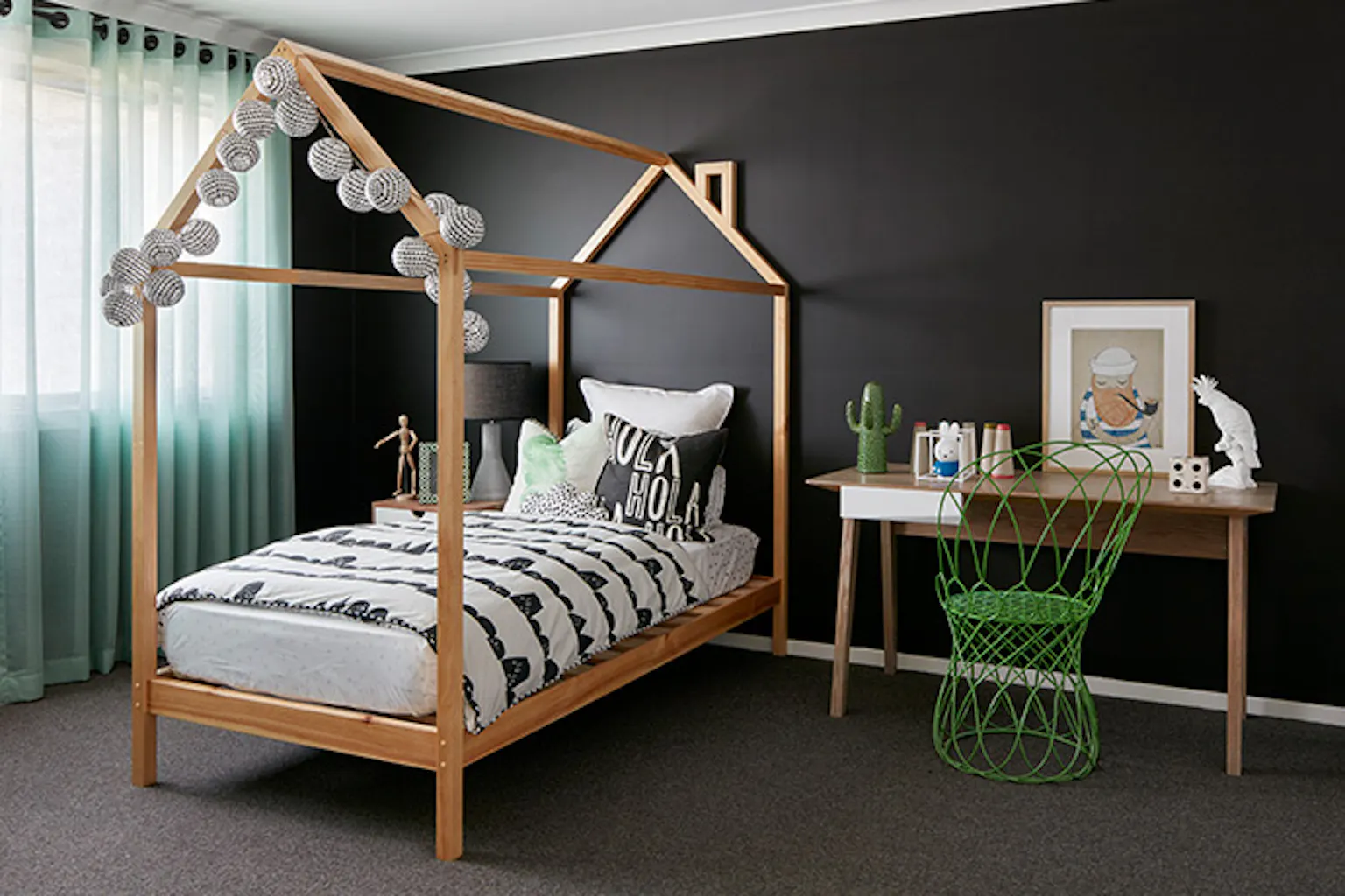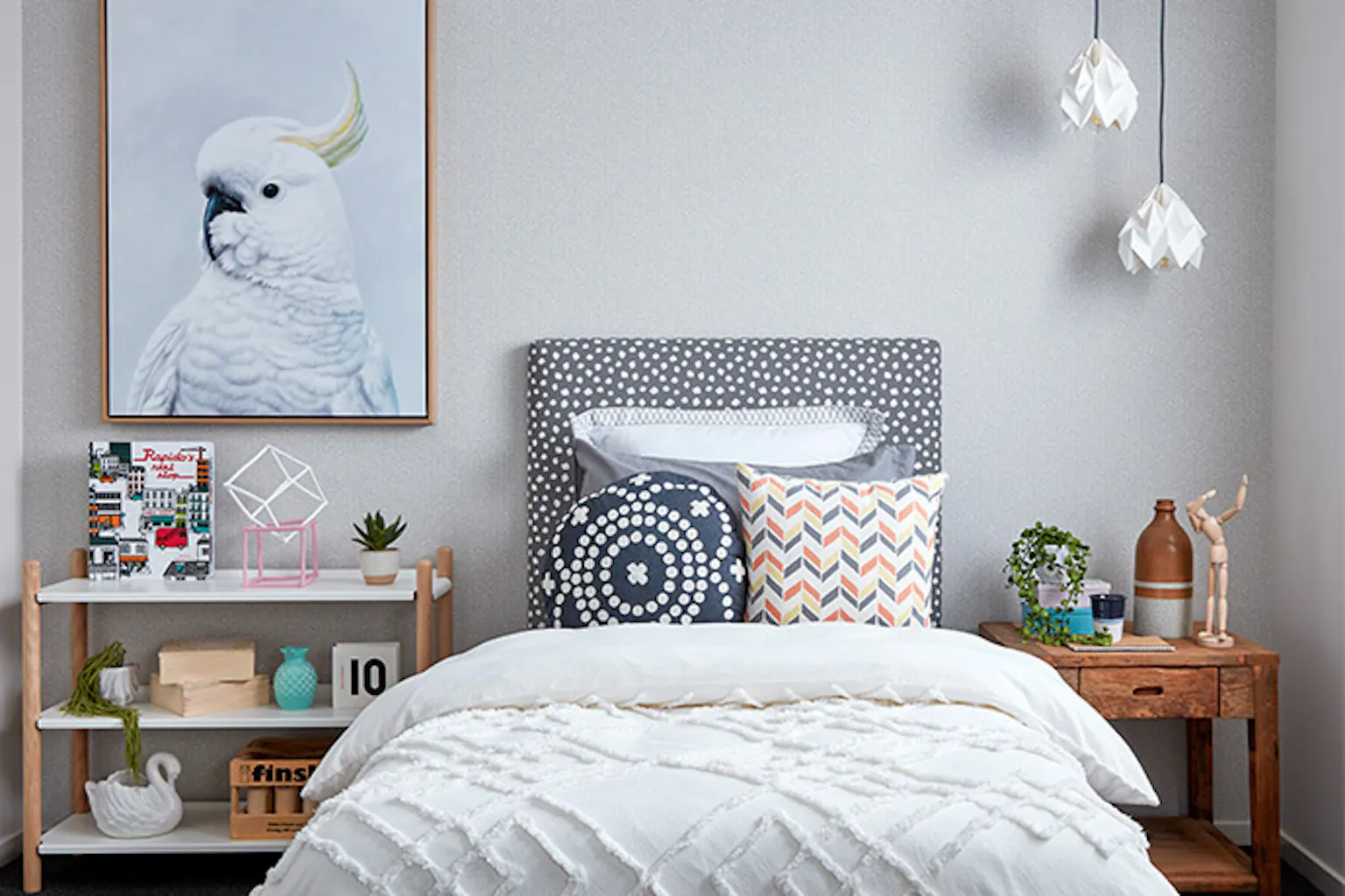 It's a short step from this grown-up teen style with still-cute ornaments to a stripped-back style that favours throws and palm prints as they inch closer to flying the nest.