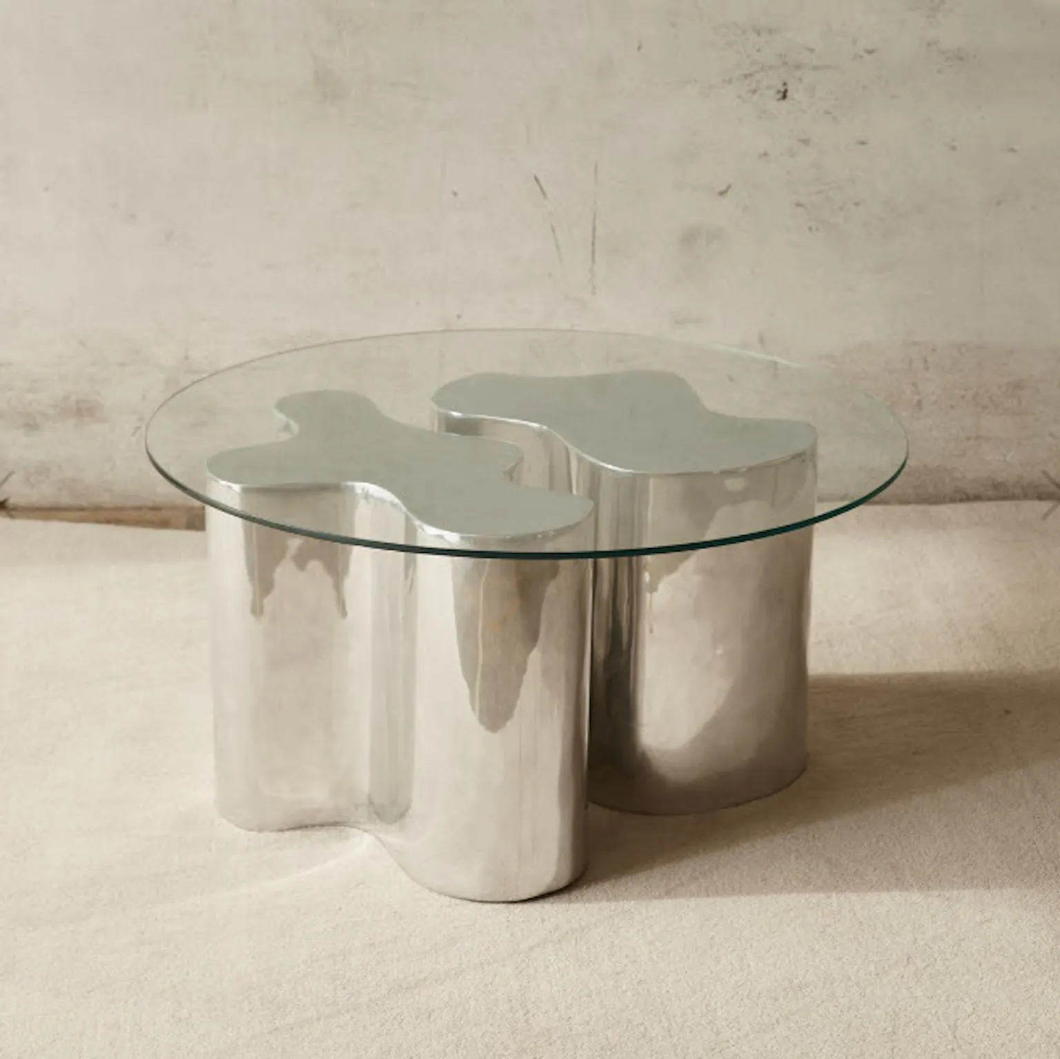 Speaking of wearing your influences on your sleeve, there’s a touch of the Matisse about the free-flowing globular stands of this gorgeous coffee table, but with a space-age twist, thanks to them being crafted in chrome. Holding a circle of glass aloft, it’s a class act.