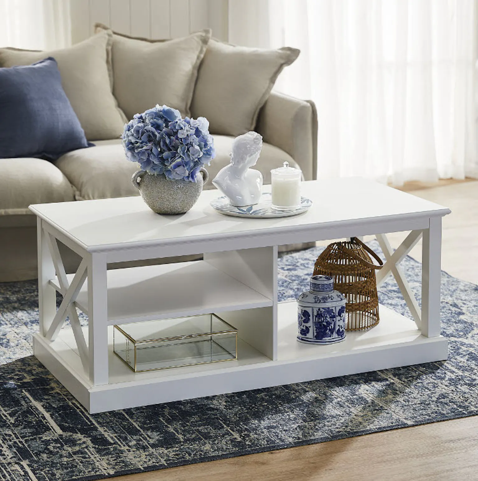 If you’ve been following our blog for a while, you’ll know we love to bring the serenity home with the Hampton’s coastal look. The easiest way to achieve that bliss is to invest in a sparkling white wood coffee table like this that offers abundant storage options too.