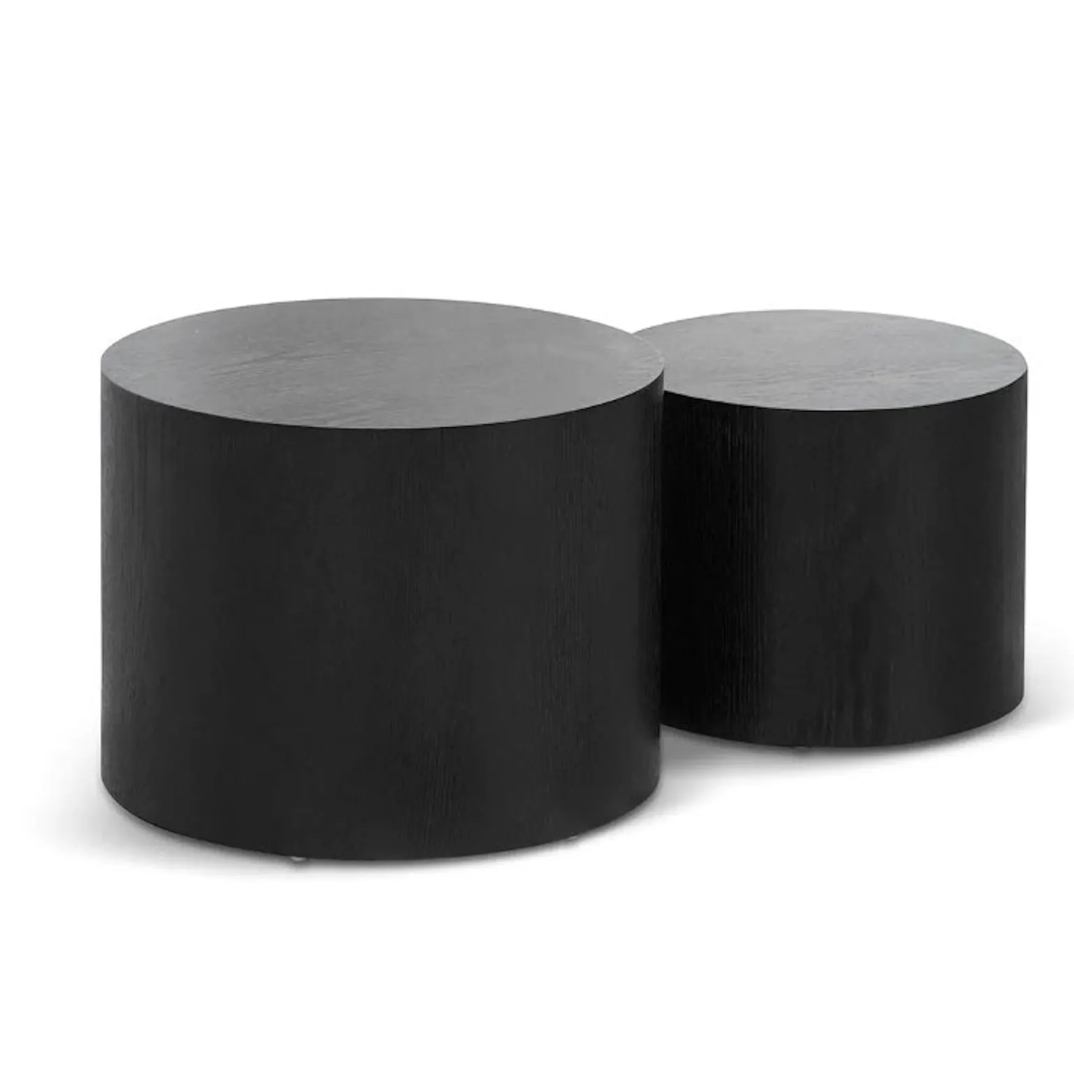 “To make a dream come true, just takes two,” sang Marvin Gaye and Kim Weston, and we couldn’t agree more. We were immediately drawn to this funky little duo of nestling round coffee tables with a matte black finish and a fine wood grain veneer.