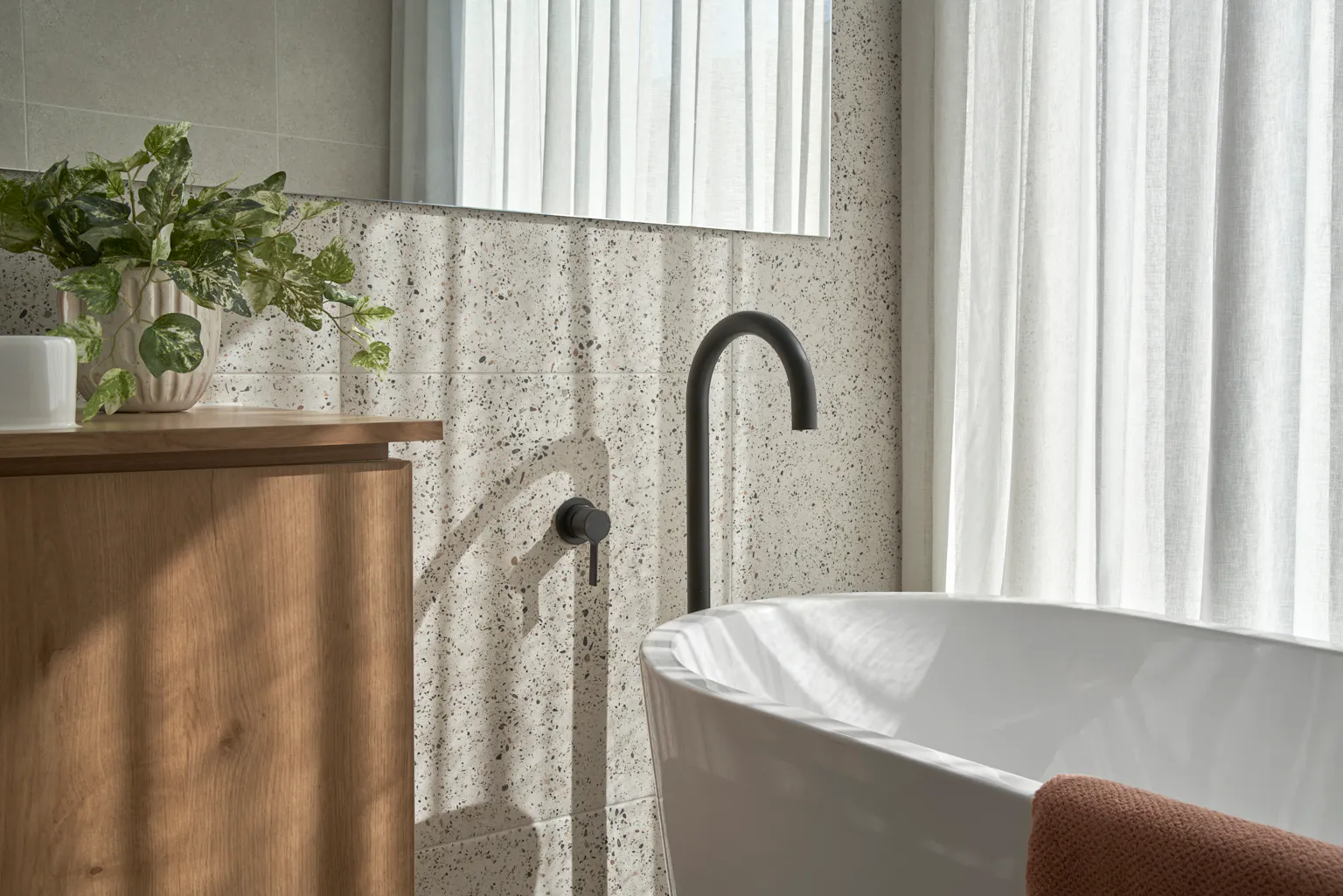 The big comeback kid on the pattern front is the terrazzo tile. “It’s a huge deal in Australian homes right now, and you can either use it sparingly as a feature splash or go for maximum impact on a bathroom floor.”