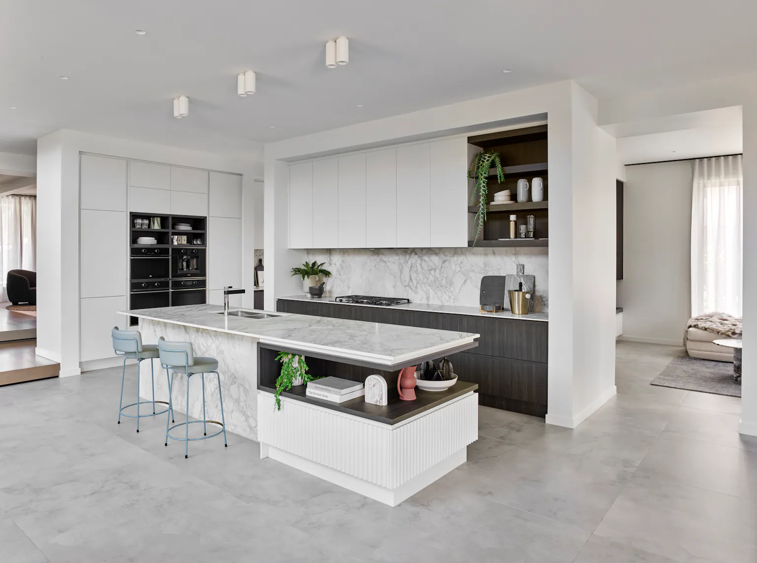Subway tiles have been a major look for kitchens and bathrooms for quite some time now, and we have no doubt they’ll remain popular. But Metricon’s kitchen guru Kristina Orban says there are both practical and aesthetic reasons why this year will see many folks shifting towards stone slabs instead.