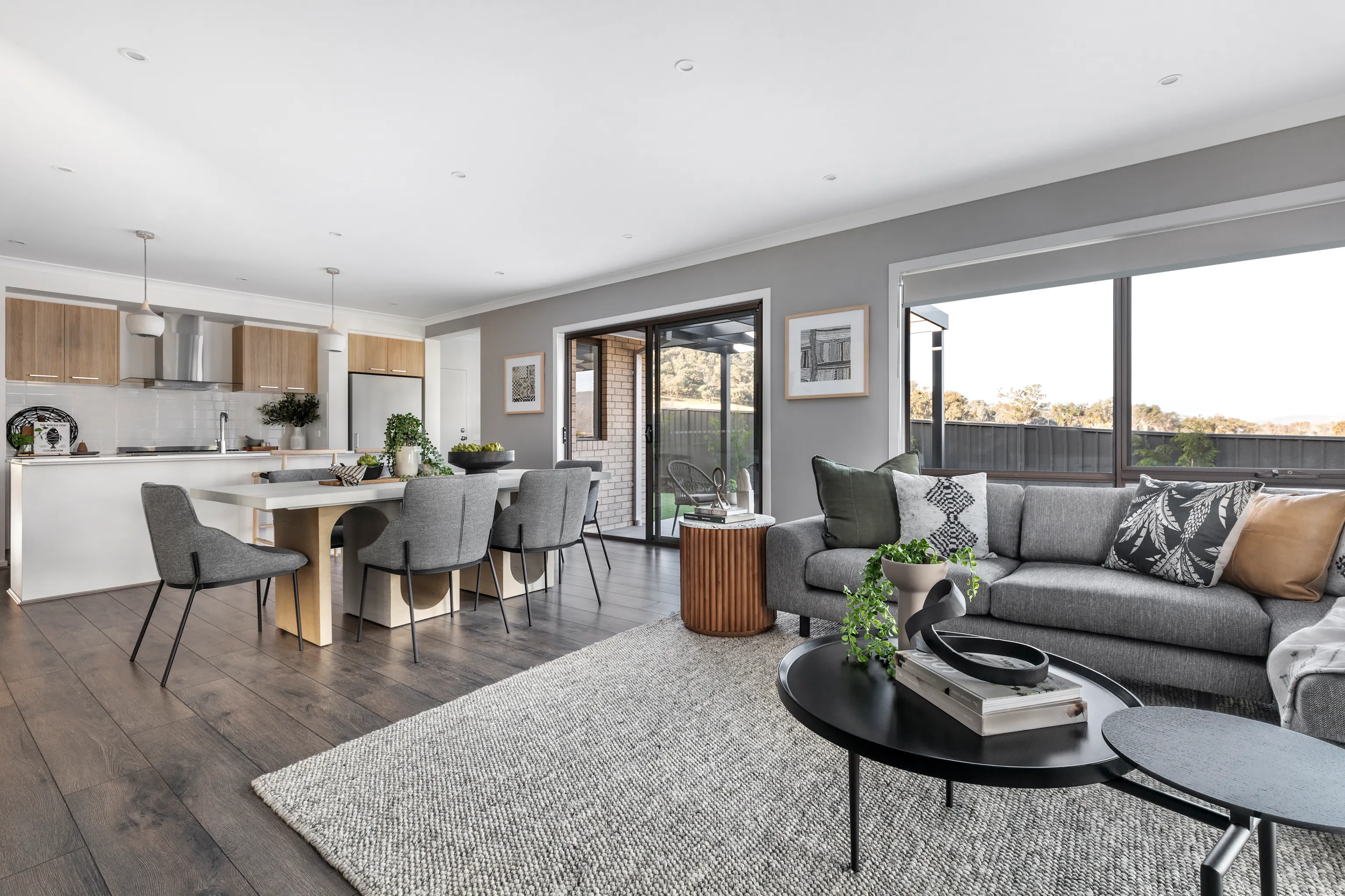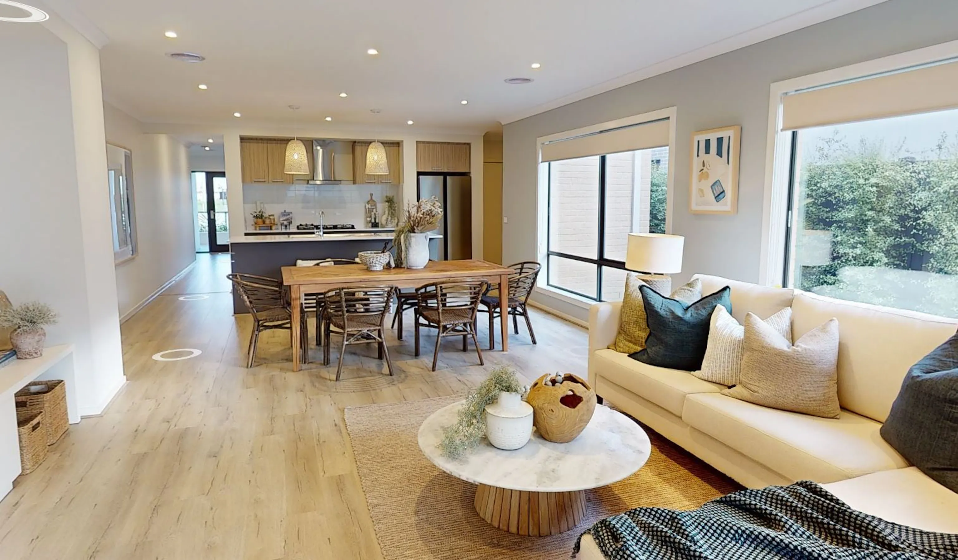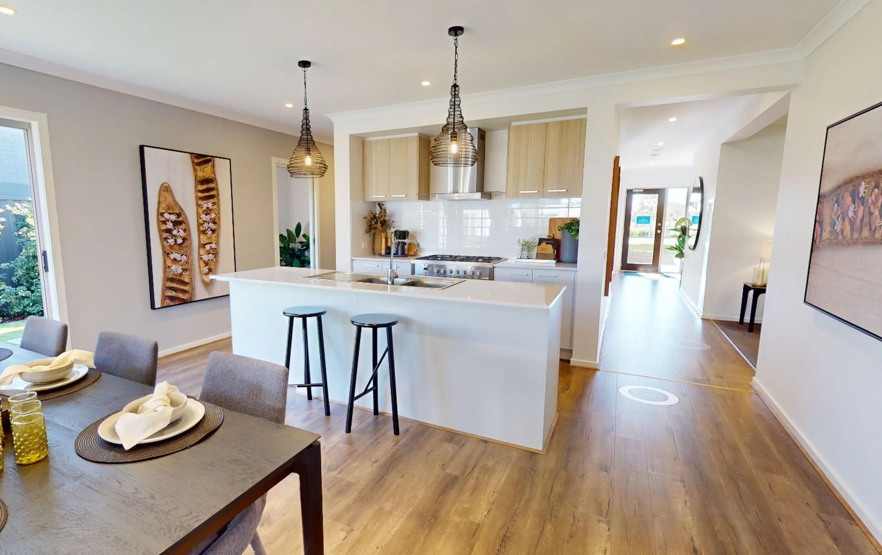 Timber look laminate flooring to main living area, meals, kitchen and entry