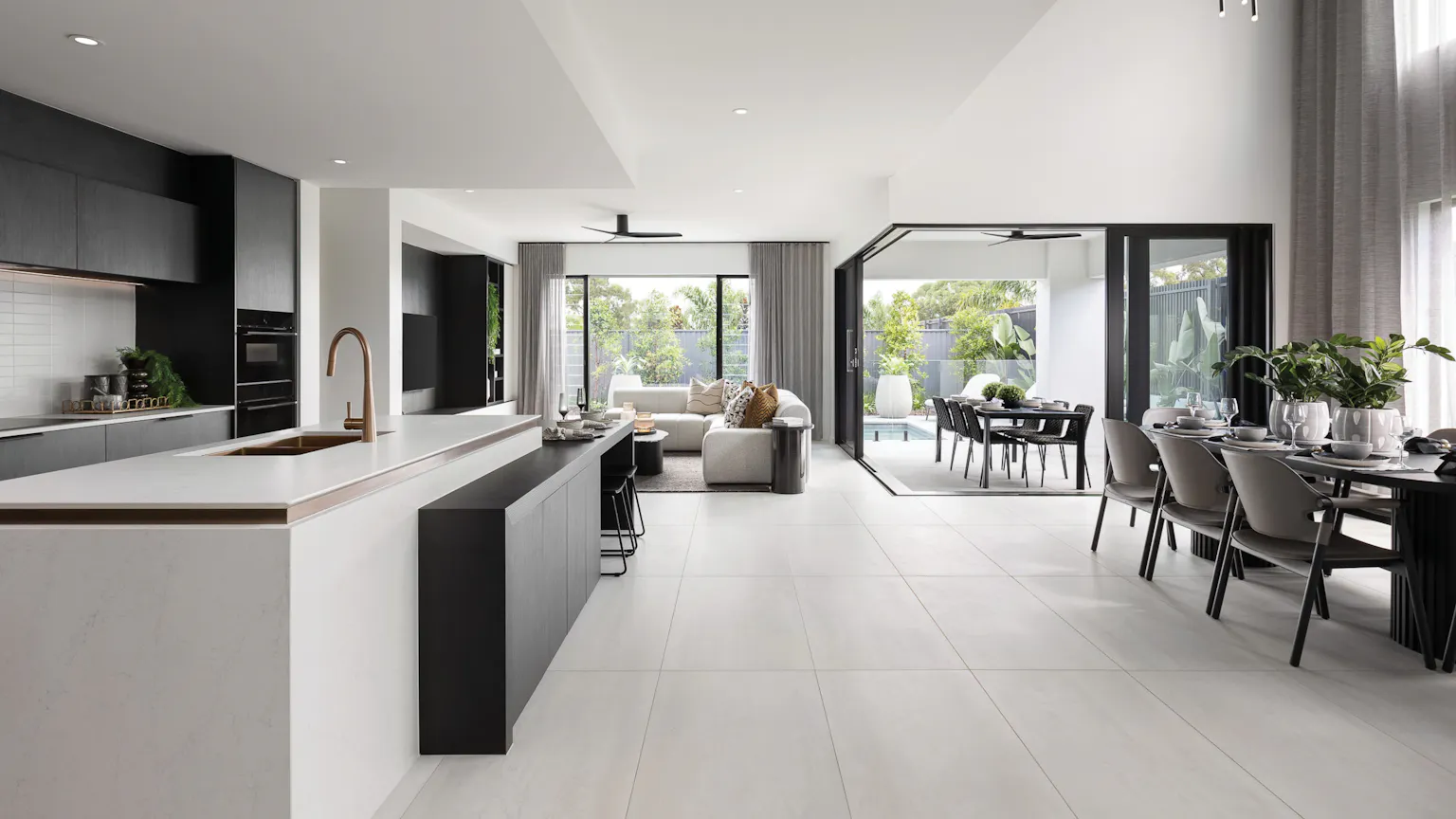 The new Waterford design is a vast family home boasting real street presence. There’s an abundance of living options including four separate internal living areas and two outdoor spaces. On the grand first floor there is a leisure area located at the front of the home as well as a central hub ideal for children. Completing this level is a massive master suite spread across the rear of the home and opening up to a private balcony retreat.